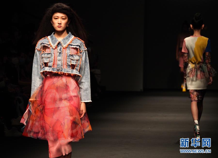 10月9日,模特在上海新天地湖畔秀场上展示MINNANHUI新款时装。 当日,2021春夏上海时装周在上海新天地等秀场继续展示各类时装。 新华社记者 任珑 摄