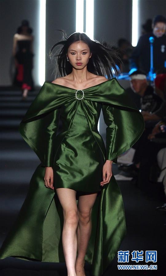 10月9日,模特在上海新天地湖畔秀场上展示Yes By Yesir新款时装。 当日,2021春夏上海时装周在上海新天地等秀场继续展示各类时装。 新华社记者 任珑 摄