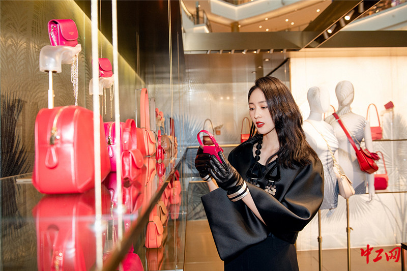 2020年10月10日,上海,童瑶亮相上海恒隆广场Giorgio Armani La Prima限时精品店活动。她戴大耳饰头发飘逸,穿披肩外套干练优雅,眼神坚定直盯镜头气场十足。视觉中国