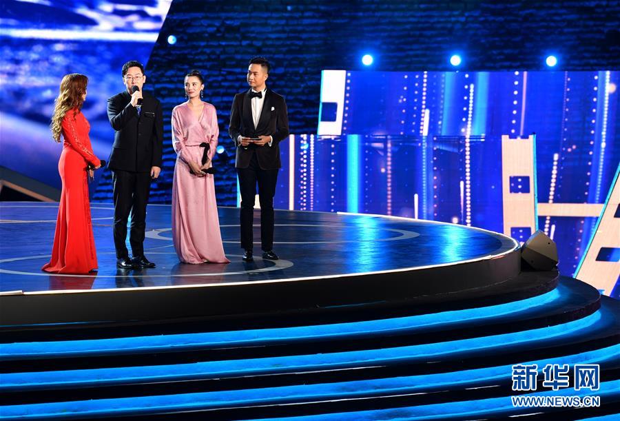 10月11日,电影导演陆川(左二)在第七届丝绸之路国际电影节开幕式上致辞。 当日,第七届丝绸之路国际电影节在陕西西安开幕。本届电影节以“丝路连接世界、电影和合文明”为主题,设置了影片特别推荐、电影展映、电影论坛等多项活动。 新华社记者 张博文 摄