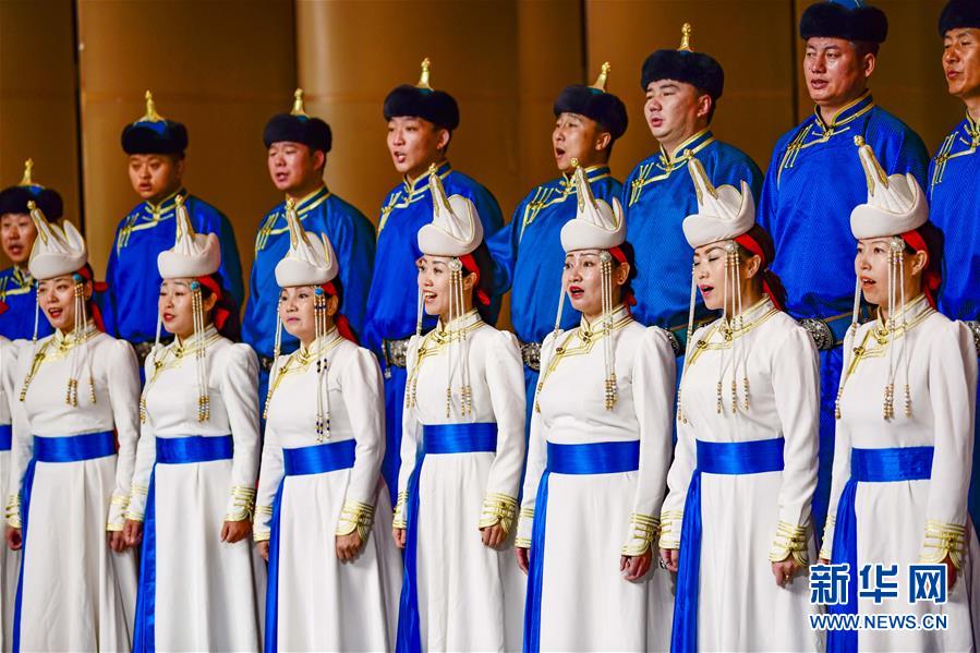 10月17日,内蒙古民族艺术剧院蒙古族青年合唱团演唱《卫拉特舞韵》。 当日,第十七届中国·内蒙古草原文化节2020内蒙古合唱大赛阿拉善展演活动在阿拉善金色胡杨音乐厅拉开帷幕。该活动为期3天,以“唱响内蒙古 共圆中国梦”为主题,通过合唱展演、惠民演出等形式,让观众近距离感受合唱艺术的魅力。 新华社发(王正 摄)