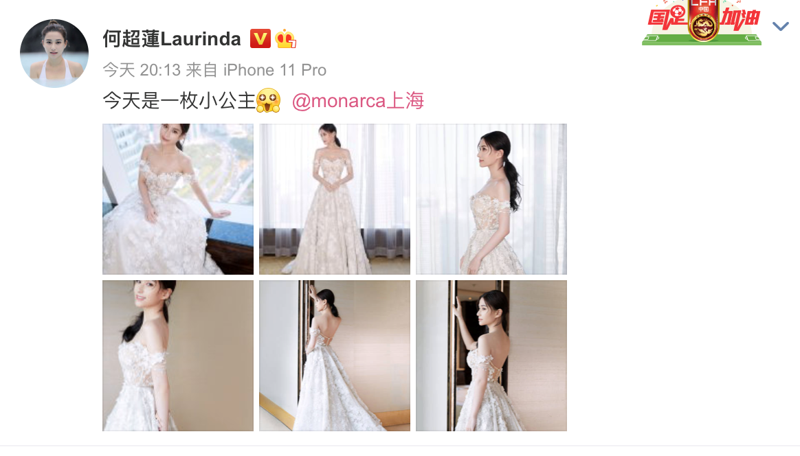 何超莲也发布微博称:“今天是一枚小公主”超可爱!~期待下次何超莲的亮相~