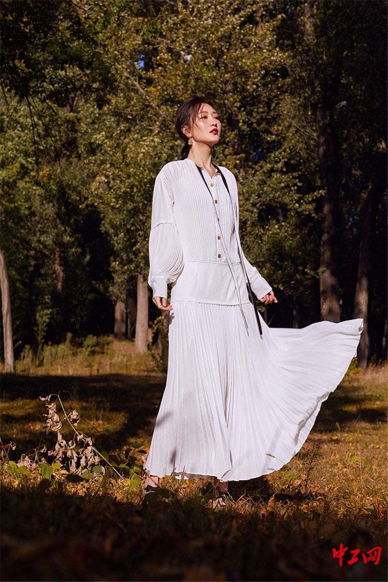 2020年10月27日讯,王鸥曝光一直秋日写真。她穿了一件白色带两根飘带的衬衫,搭配一条白色的百褶半身裙,优雅又时尚。这一身白显得人修长又有仙气,非常好看。视觉中国