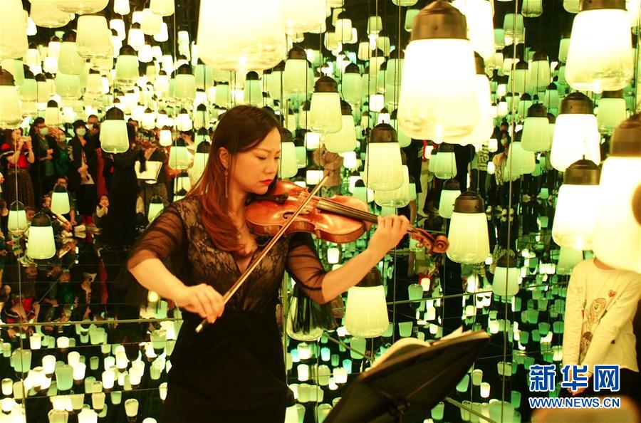 11月6日,上海交响乐团演奏家在无界美术馆演奏。 当晚,上海交响乐团首度联手无界美术馆,在科幻互动光影中带来一场“沉浸”式演出,演奏家们为观众“零距离”带来巴赫、莫扎特、圣-桑、德彪西等多位作曲大师的经典之声。在这场美术馆里的音乐会,观众可进入演奏区域,近距离地看到演奏家的演出、感受他们的情绪和流淌而出的音乐,进而感受音乐与数字艺术相结合带来的全新体验。 新华社记者 任珑 摄