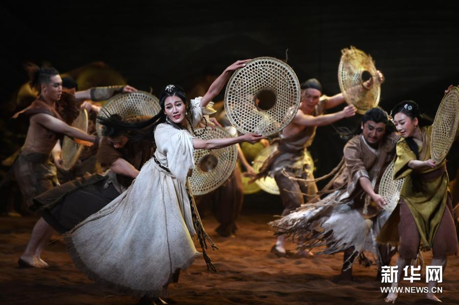 11月14日晚,演员在兰州市黄河剧院表演舞剧《问道崆峒》。新华社记者 陈斌 摄