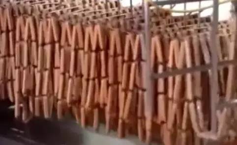 以及用机器制作成火腿肠的镜头,