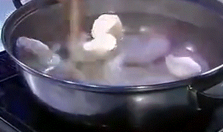 在锅中倒入清水,放进抹布和鸡蛋壳,大火煮5分钟左右。