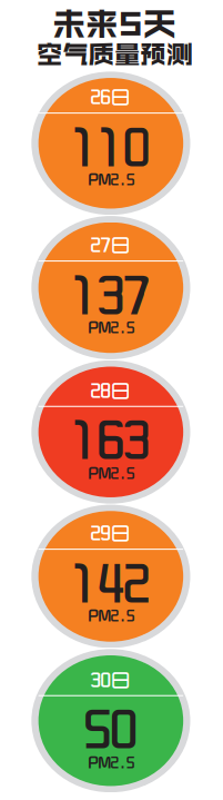 29日为重度污染,受弱冷空气到来前的挤压,部分时段可能出现小时严重污染,