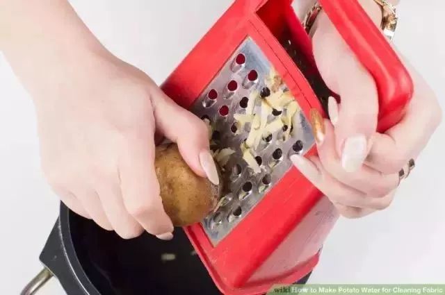 将洗净的土豆摩擦碎,倒入锅中。