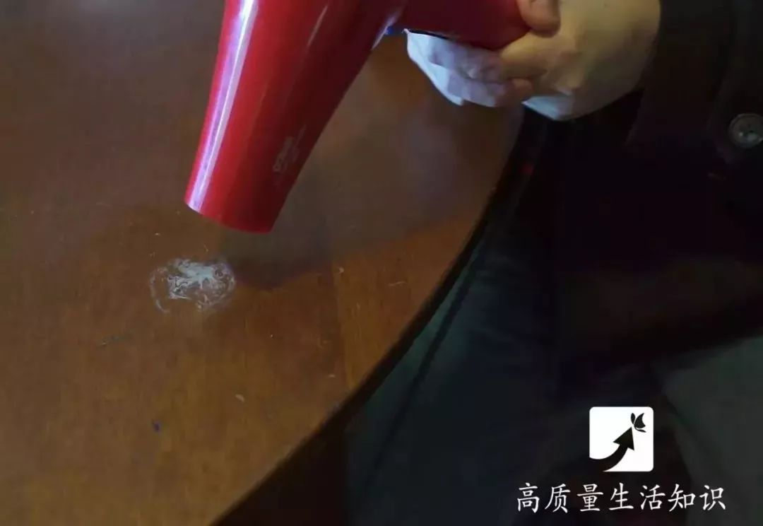 蜡不小心滴在桌上或者地板上,硬刮难免会留下痕迹。这时候可以用吹风机开热风挡,对着蜡吹一会,自然就化了。