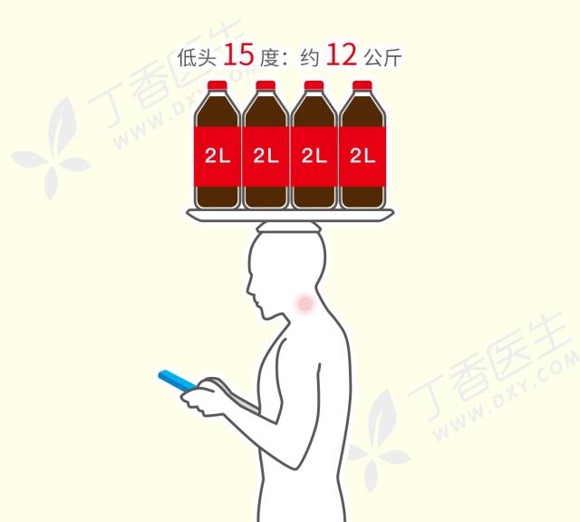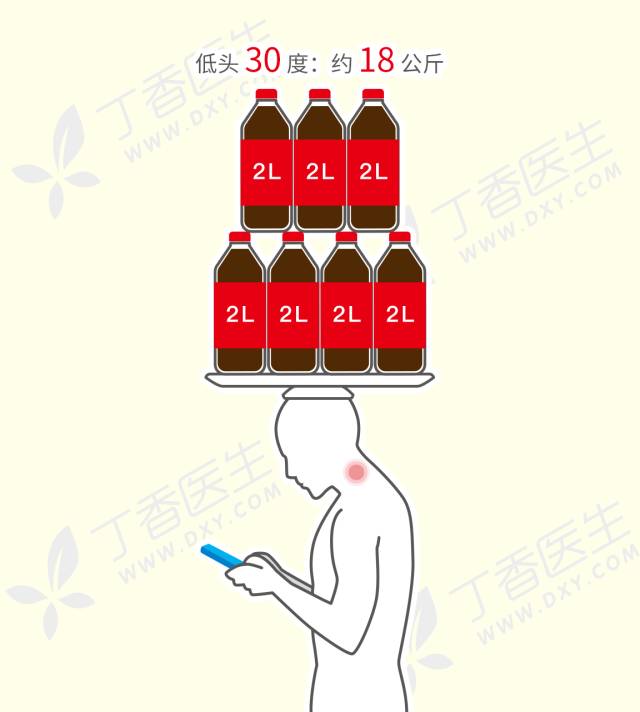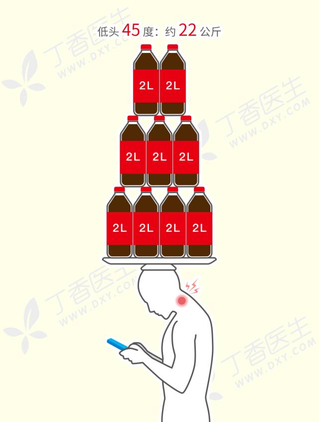 当一个人不低头的时候,脖子只需要承担头部的压力(大约 4~5 公斤),很轻松。