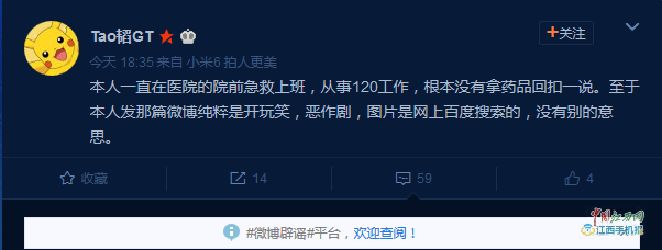 南昌一医生微博晒药品回扣 医院介入调查后自称:纯属恶作剧