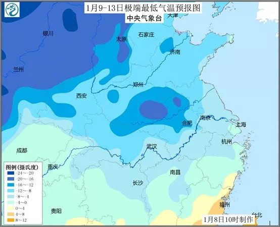 降温过后,最低气温0℃线将南压至华南北部,江南中北部最低气温-2~-7℃,陕西南部、河南、湖北北部、安徽北部等地最低气温可达-10~-15℃,局地低于-15℃,接近或跌破历史同期极值。以省会级城市为例,郑州最低气温将跌至-10℃,合肥将跌至-13℃,武汉将跌至-7℃。预计,14日上述地区的气温将逐渐回升,15日气温将回升至接近常年状态。
