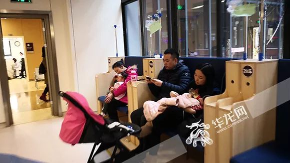 一个家里小孩生病,往往都由父母陪同。 记者 黄宇 摄