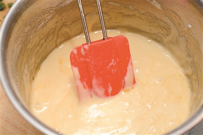 2 因为焦化后的黄油有杂质,需隔着纱布倒入面糊里,否则杂质会一起流入面糊。