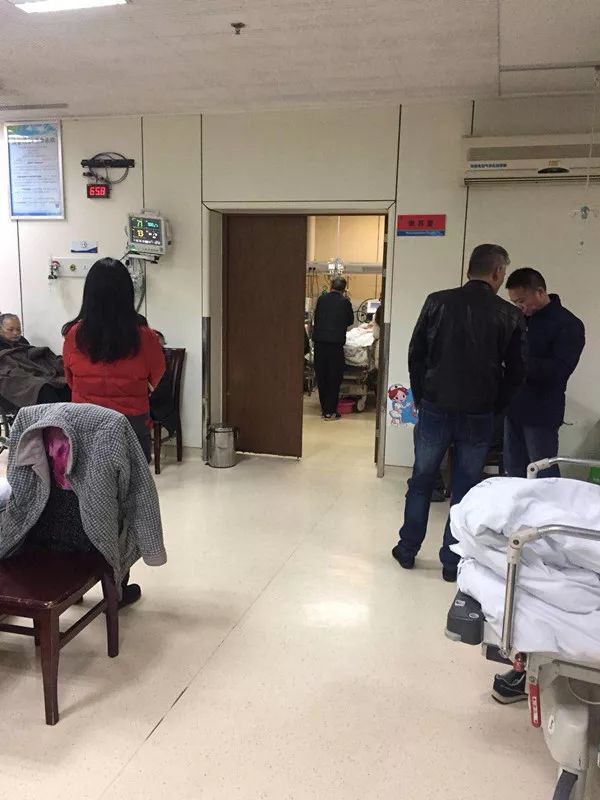 男青年的妻子走出复苏室,蹲下来大哭不止,满头白发的姑父轻拍她的肩膀:“坚强一点啊,后面还有好多事情得靠你自己呢……”妻子哭得更伤心了。
