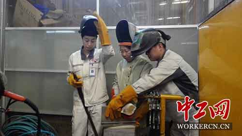 1990年,孙景南刚从职高毕业进厂时,干的是所学专业——油漆工。拎个小桶刷刷油漆,相对轻松,似乎更适合女孩。可一到现场干活,她看到焊工们焊接的时候“噼里啪啦,焊花四射,好漂亮”。后来正好需要招焊工,她第一个就报名了。