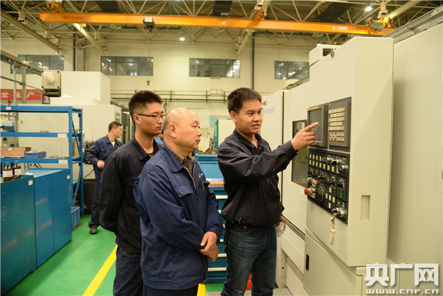 王保森指导年轻工人操作数控设备
