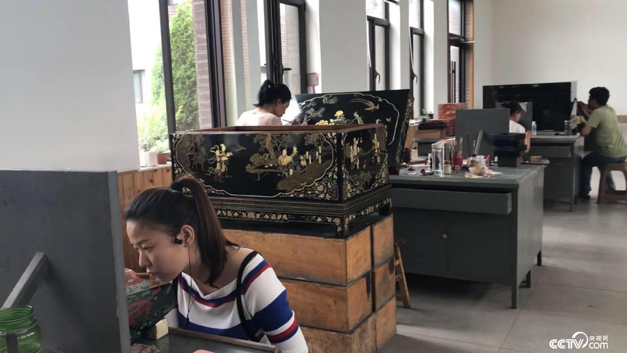 学徒们正在制作各类漆器作品。 田宏 摄