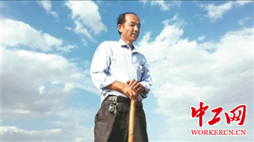 唐希明在治沙现场。工人日报—中工网记者 雷宇翔 摄