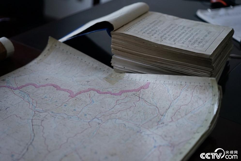 图为张阔海的工作日记和地图。