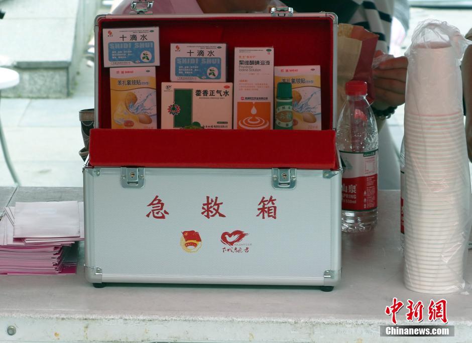 图为杭州“武林大妈”为学生及家长准备的爱心药箱。 王刚 摄 记者 张茵