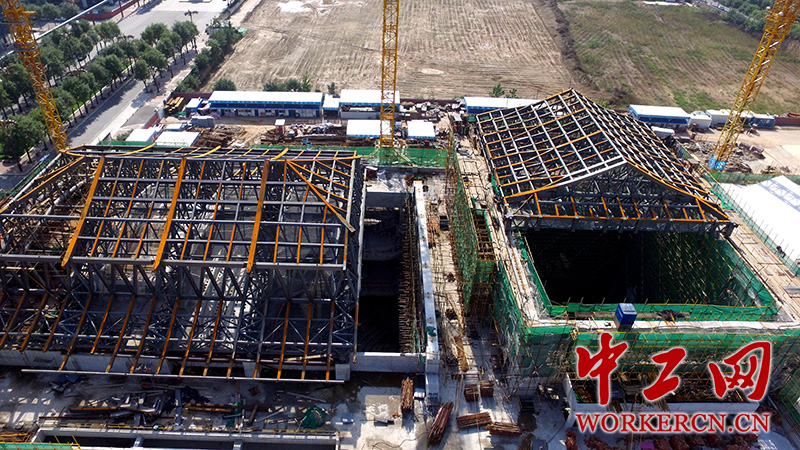 施工过程中的陕西大剧院大跨钢结构屋面