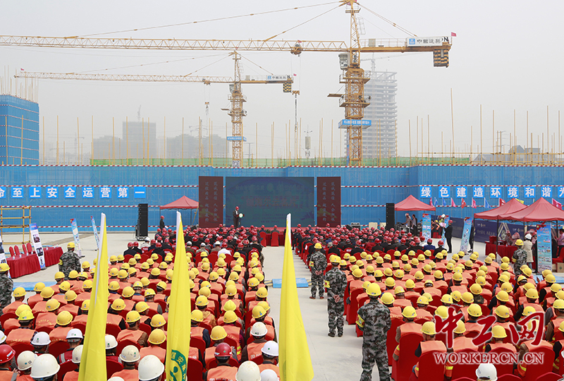 4月7日上午,以“安全培训提素质,班组管理强基础”为主题的中建二局2017年“安康杯”竞赛暨争创青年安全生产示范岗启动仪式在三公司济南海尔云世界项目现场举行。
