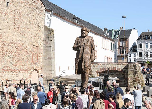 2018年5月5日,在德国特里尔,人们参观马克思雕像。当日是马克思诞辰200周年纪念日。由中国赠送的马克思雕像揭幕仪式在他的故乡——德国西南部城市特里尔举行。新华社记者 单宇琦 摄 图片来源:新华网