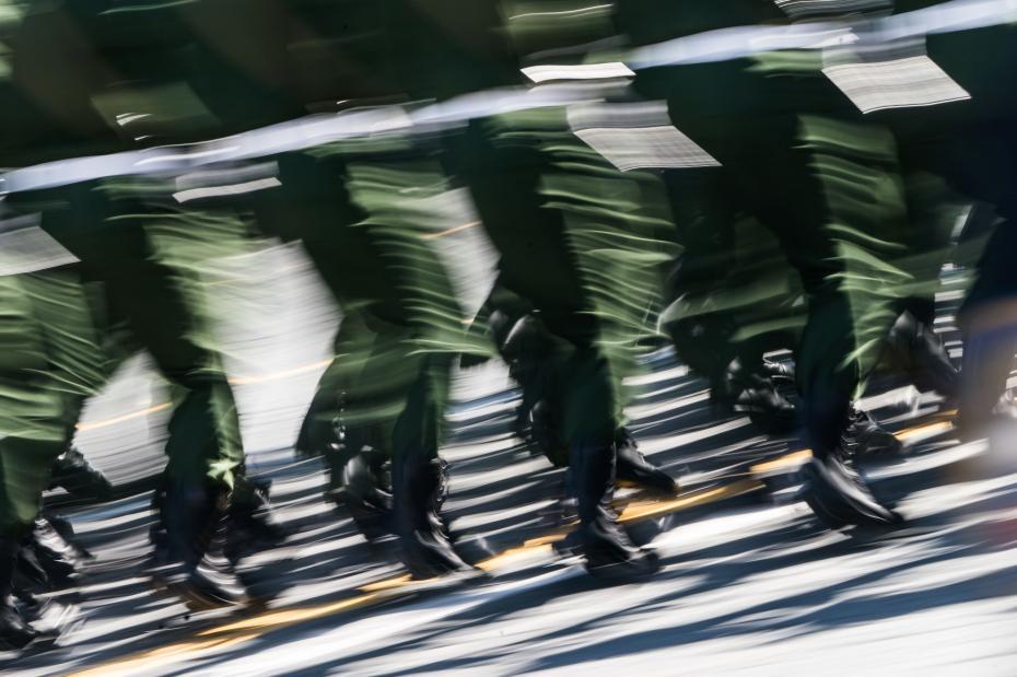 2018年5月9日,在俄罗斯莫斯科,俄军士兵参加卫国战争胜利纪念日阅兵式。新华社记者 吴壮 摄 图片来源:新华网