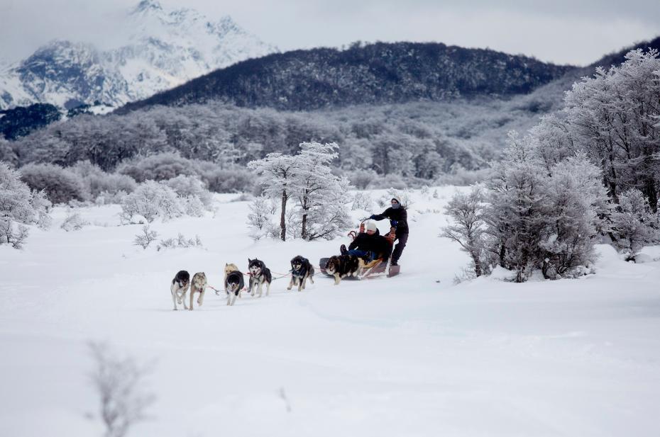 2018年7月8日,在阿根廷火地岛首府乌斯怀亚,游客体验狗拉雪橇。在南美大陆最南端的乌斯怀亚距南极洲只有800公里。新华社发(马丁·萨巴拉摄) 图片来源:新华网