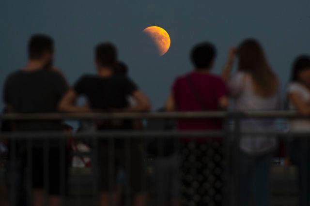 2018年7月27日,在波兰首都华沙,人们观赏月食。新华社发(亚普·阿林摄) 图片来源:新华网