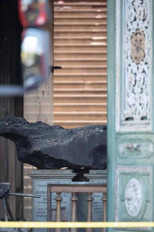 这是2018年9月4日在巴西里约热内卢拍摄的火灾后幸存的巴西国家博物馆藏品之一——落在巴西境内最大的陨石。新华社记者 李明 摄 图片来源:新华网