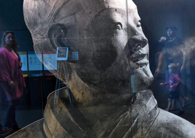 2018年12月15日,在新西兰首都惠灵顿国家博物馆,观众在《秦始皇兵马俑:永恒的守卫》展览上参观。新华社记者 郭磊 摄 图片来源:新华网
