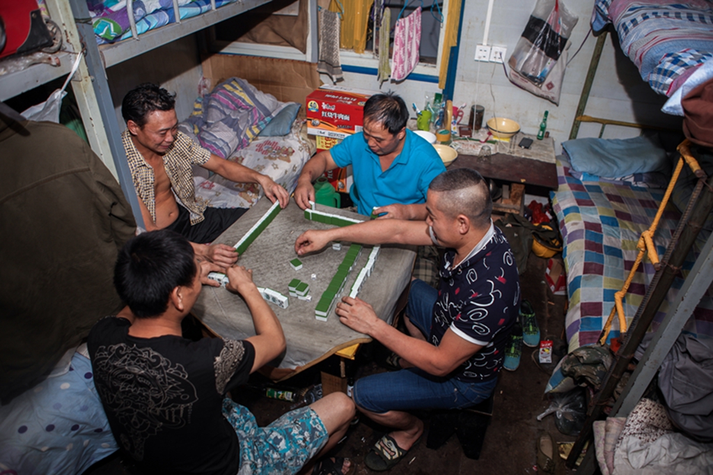 偶尔的麻将时光也是农民工兄弟们为数不多的娱乐活动之一。