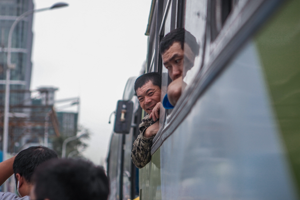 结束了一天工作的建设者们每天坐着大巴穿过城市的繁华与喧嚣回到自己的宿舍,享受那份属于自己的休闲时光。