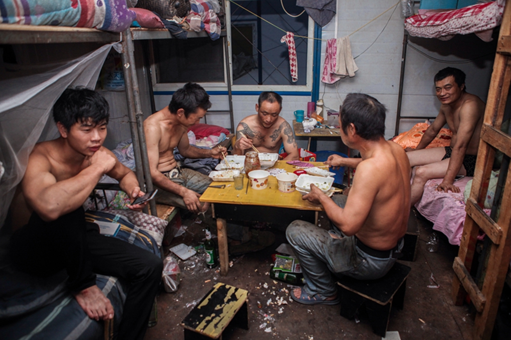 回到宿舍后,大家围坐在一张桌子上边吃饭边聊天,彼此开怀大笑缓解了一天工作的疲惫。