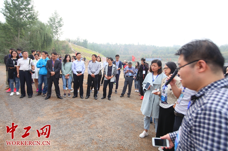 9月25日,“走进山西看发展”——第十一届全国网络媒体山西行的采访团成员来到了位于阳泉市郊区的阳大铁路施工现场。此时,现场的施工机械不断发出轰鸣,北面正在建设的是三郊特大桥,南面则是杨树沟隧道出口,这条以阳泉北站为起点的现代化铁路,建成后将直通晋中市昔阳县大寨村。  中工网 杨泽摄。