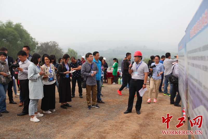 9月25日,“走进山西看发展”——第十一届全国网络媒体山西行的采访团成员来到了位于阳泉市郊区的阳大铁路施工现场。此时,现场的施工机械不断发出轰鸣,北面正在建设的是三郊特大桥,南面则是杨树沟隧道出口,这条以阳泉北站为起点的现代化铁路,建成后将直通晋中市昔阳县大寨村。 中工网 杨泽摄。