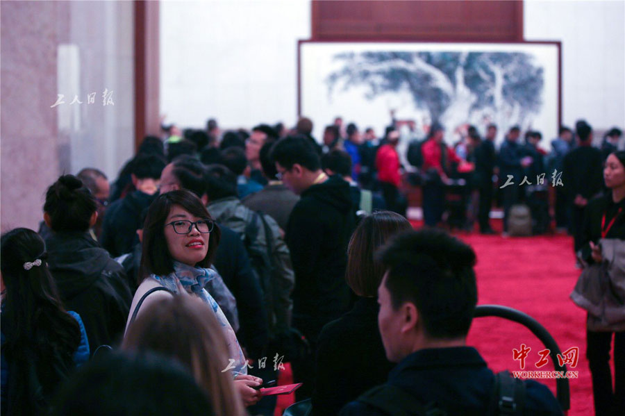聚焦十九大•常委见面会前 记者排队入场