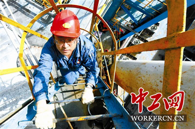 兰州的8月,30多摄氏度的高温,70多米高的炼油塔上,记者找到刚从油罐中爬出来的卢朝鹏。