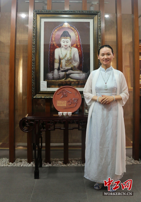 国家非遗传承人、国家研究员级高级工艺美术师朱寿珍 (中工网 张秋晨/摄)