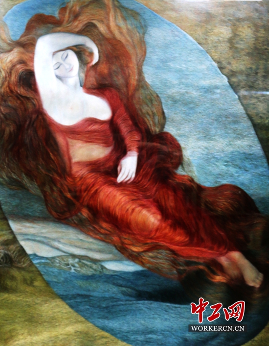 朱寿珍刺绣作品《爱神》(中工网 张秋晨/摄)
