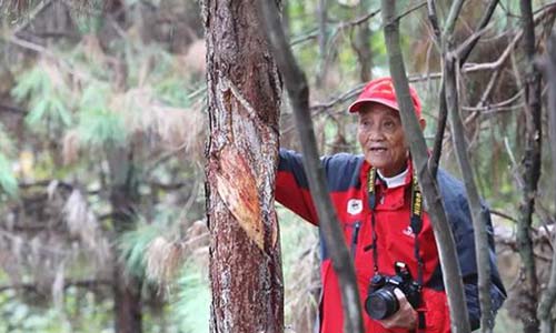 为躲避丛林中的蛇,朱再保经常要“投石问路”,有时还会碰到野猪。