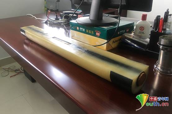 在郑新龙的办公桌上,放着半根表面泛黄的220千伏海底电缆工厂接头(部分)实物模型,泛黄的部分是海底电缆的绝缘层,是保证海底电缆绝缘性能的核心层。郑新龙表示,6根这个型号的海底电缆输送的电能,就可以支撑起整个舟山市100多万人口的全部生产生活用电。中国青年网记者 刘喆 摄