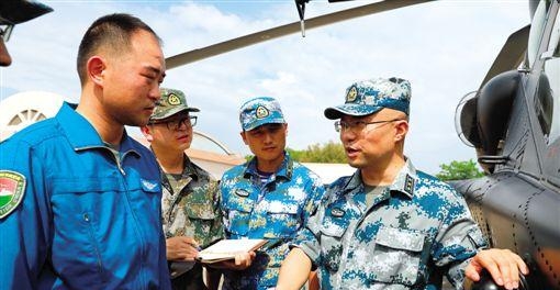 廖新华与某陆航旅飞行员探讨交流。(右一)綦智超/摄