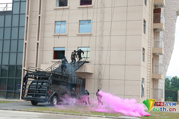 武警深圳支队官兵组织反恐分队进行攀登突击训练,为圆满完成各项任务提供有力保障。武警广东总队深圳支队供图