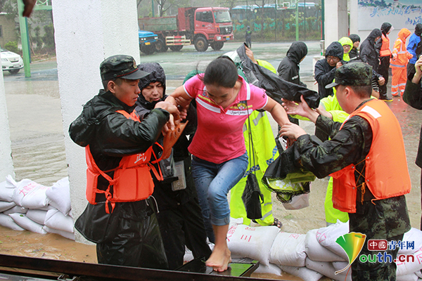 2018年9月,第22号超级台风“山竹”袭击深圳市。武警深圳支队派出救援官兵转移受困群众。武警广东总队深圳支队供图