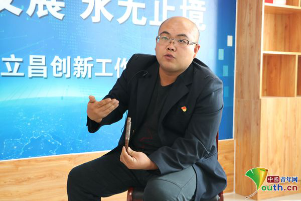 北京铁路局保定工务段保定线路车间养路工张旭介绍道岔立螺栓尼龙套取出器使用方法。中国青年网记者刘喆 摄