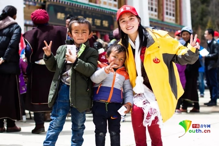 2018年清明放假期间,唐菲菲放弃休息时间,和医疗队队友到西藏林芝义诊。当地孩子看病并领到免费药物后,露出天真纯洁的笑容。受访对象本人供图